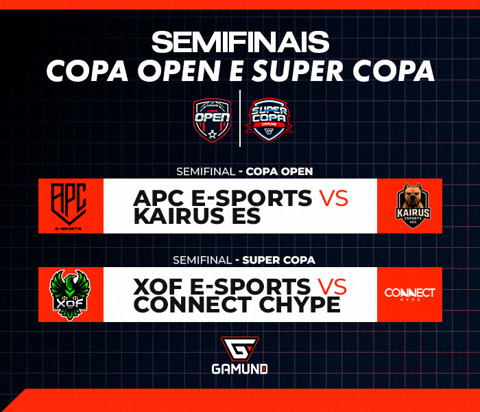 Dia de mais decisões pela Super Copa e Copa Open da Gamund! Hoje entram em campo dois dos semifinalistas de cada competição e descobriremos os primeiros finalistas ao final da.