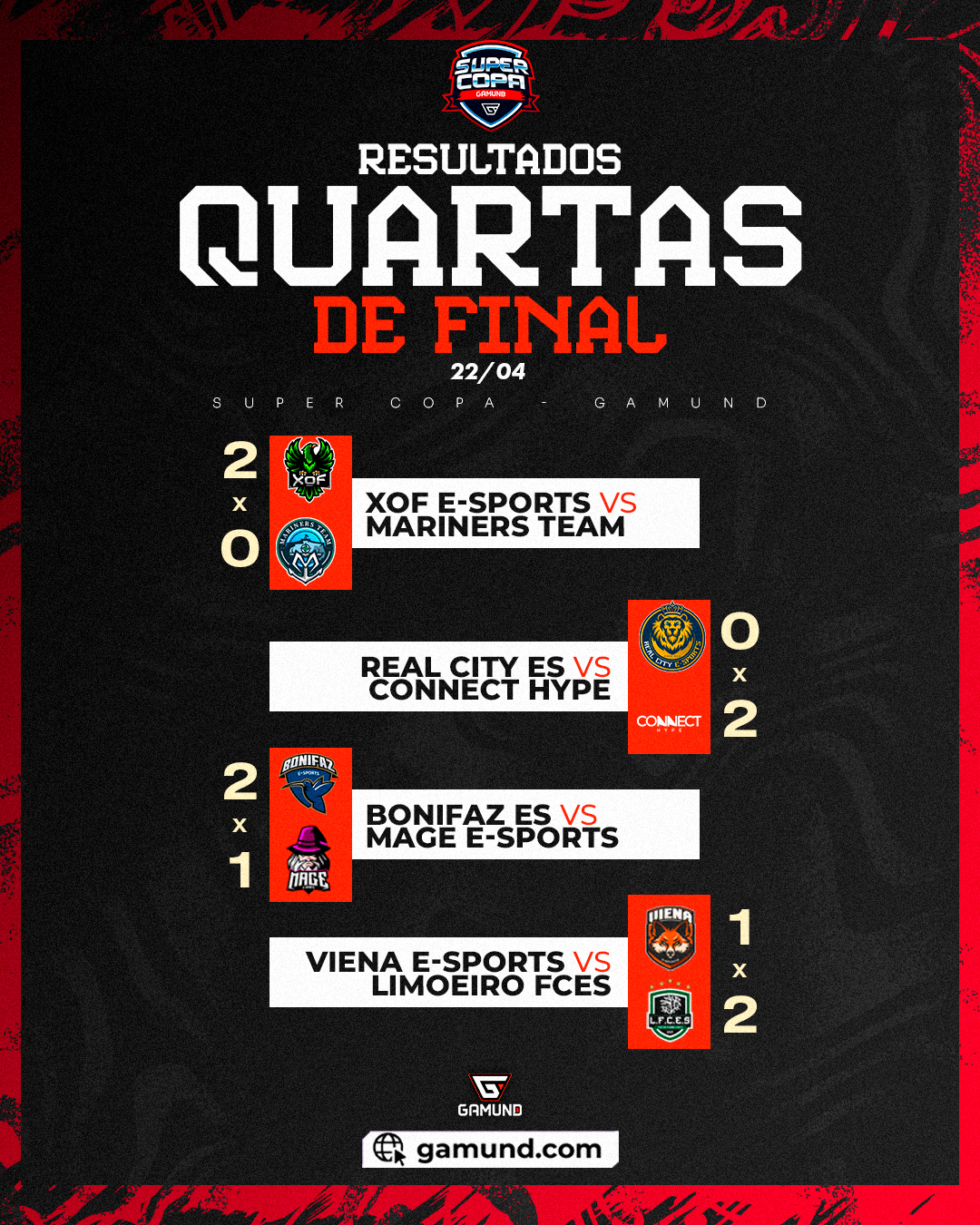 Terça-feira (22) marcou as quartas de final da Supercopa da Gamund. Após declarações polêmicas de alguns confrontos, foram definidos os quatro semifinalistas da competição!